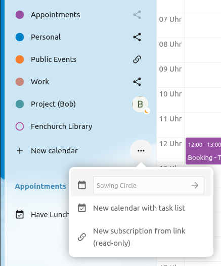 As of Calendar v3 the app can generate appointment slots which other Nextcloud users but also people without an account on the instance can book. Appointments offer fine-granular control over when you are possibly free to meet up. This can eliminate the need to send emails back and forth to settle on a date and time.