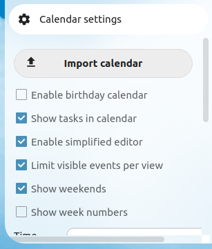 + Import Calendaryou can select one or more calendar files from your local device to upload.The upload can take some time and depends on how big the calendar you import is.