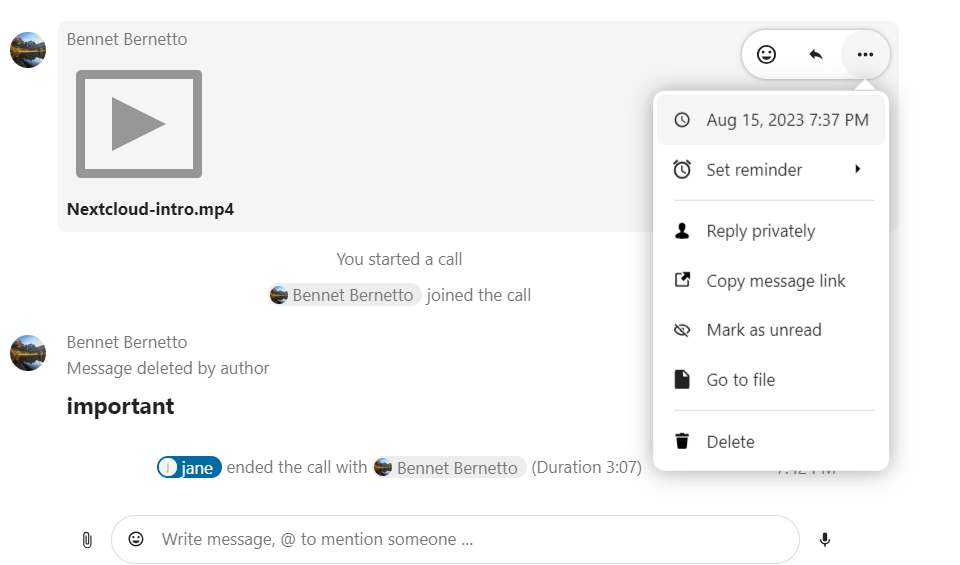 Here you can also create a direct link to the message or mark it unread so you will scroll back there next time you enter the chat. When it is a file, you can view the file in Files.