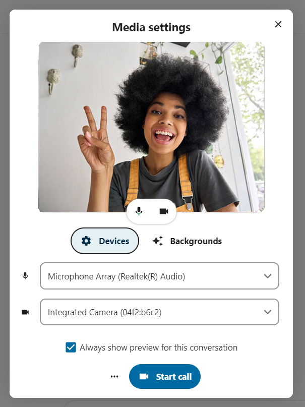 When you’re in a conversation, you can start a call any time with the Start call button. Other participants will get notified and can join the call.