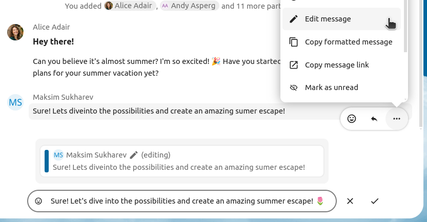 You can edit messages and captions to file shares up to 6 hours after sending.