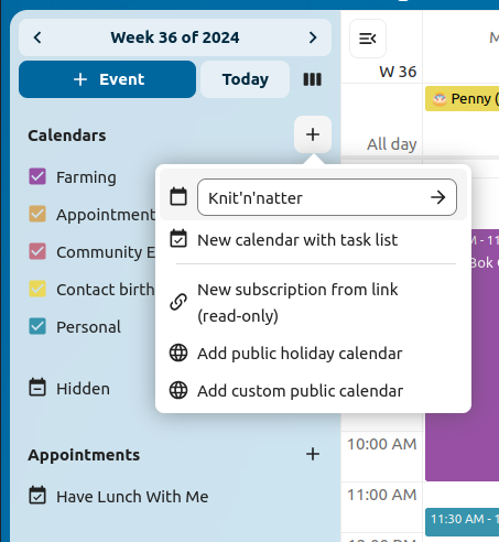 You can embed your calendars into supported apps like Talk, Notes, etc…