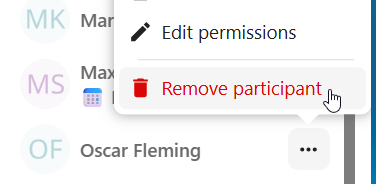 You are always moderator in your new conversation. In the participant list you can promote other participants to moderators using the ... menu to the right of their user name, assign them custom permissions or remove them from the conversation.