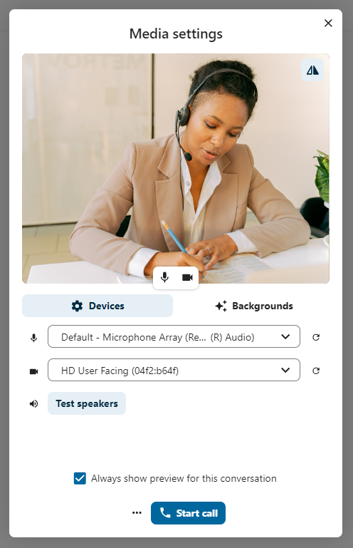 When you’re in a conversation, you can start a call any time with the Start call button. Other participants will get notified and can join the call.
