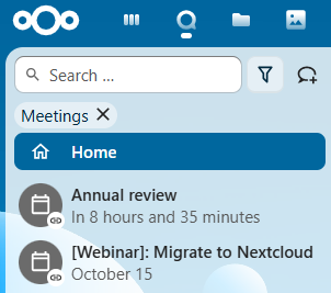 If calendar events have a Talk conversation set as event location, you will see information about upcoming events inside of this conversation. That way you can stay informed about scheduled meetings or activities directly within your chat. If Calendar app is enabled, you can click on an event to view details.