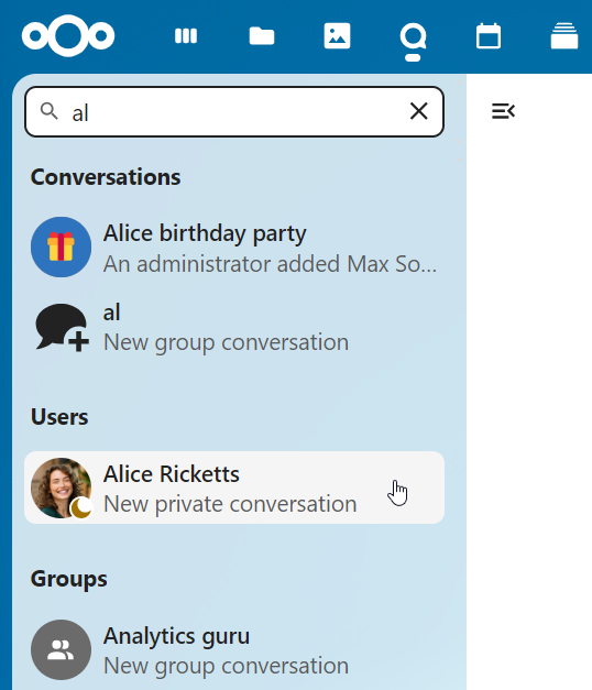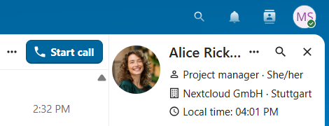 If a user becomes unavailable and has set an out-of-office status in Personal settings > Availability, you will find additional information in this conversation, such as provided description, absence date, or their replacement person.