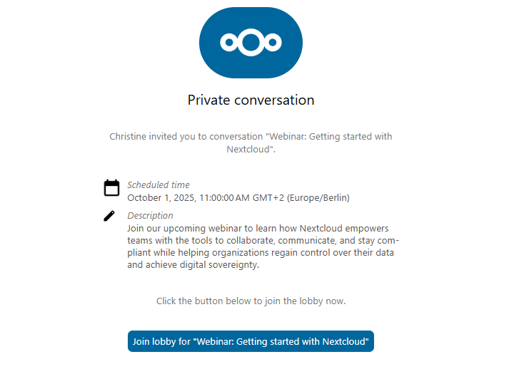 If you received a link to a Nextcloud Talk conversation, you can join as a guest without a Nextcloud account.