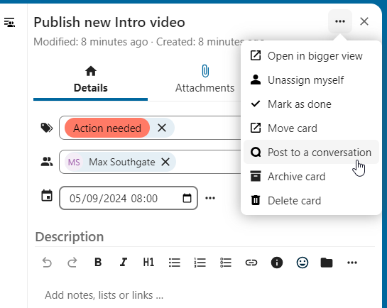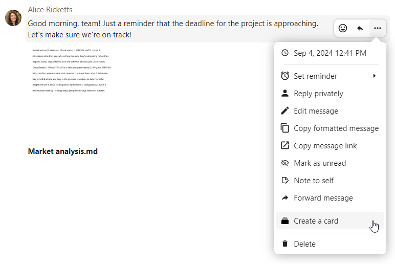Several apps integrate with Talk messages, allowing you to turn messages into actionable items or share content directly in conversations.