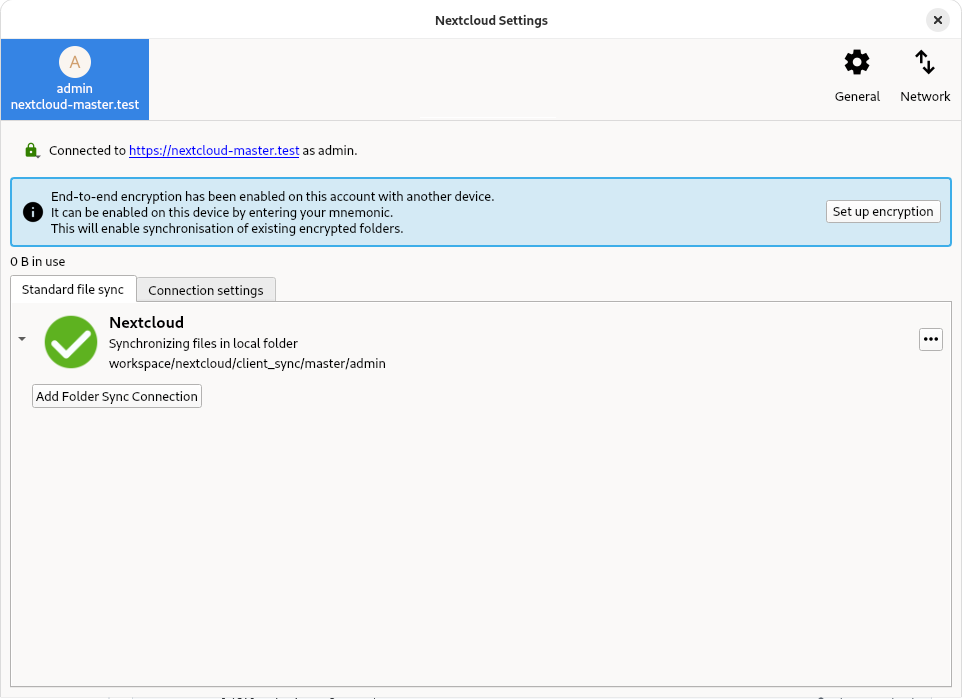 If your administrator enabled the [End-to-End Encryption app](https://apps.nextcloud.com/apps/end_to_end_encryption), you can start using it from one of your devices. Open the settings of the Nextcloud client and look for the EE2E encryption settings.