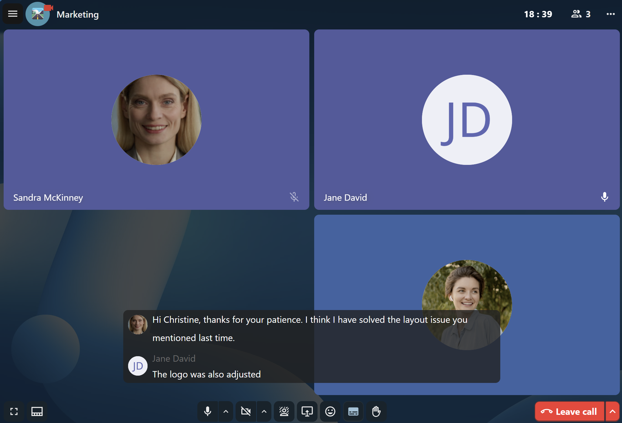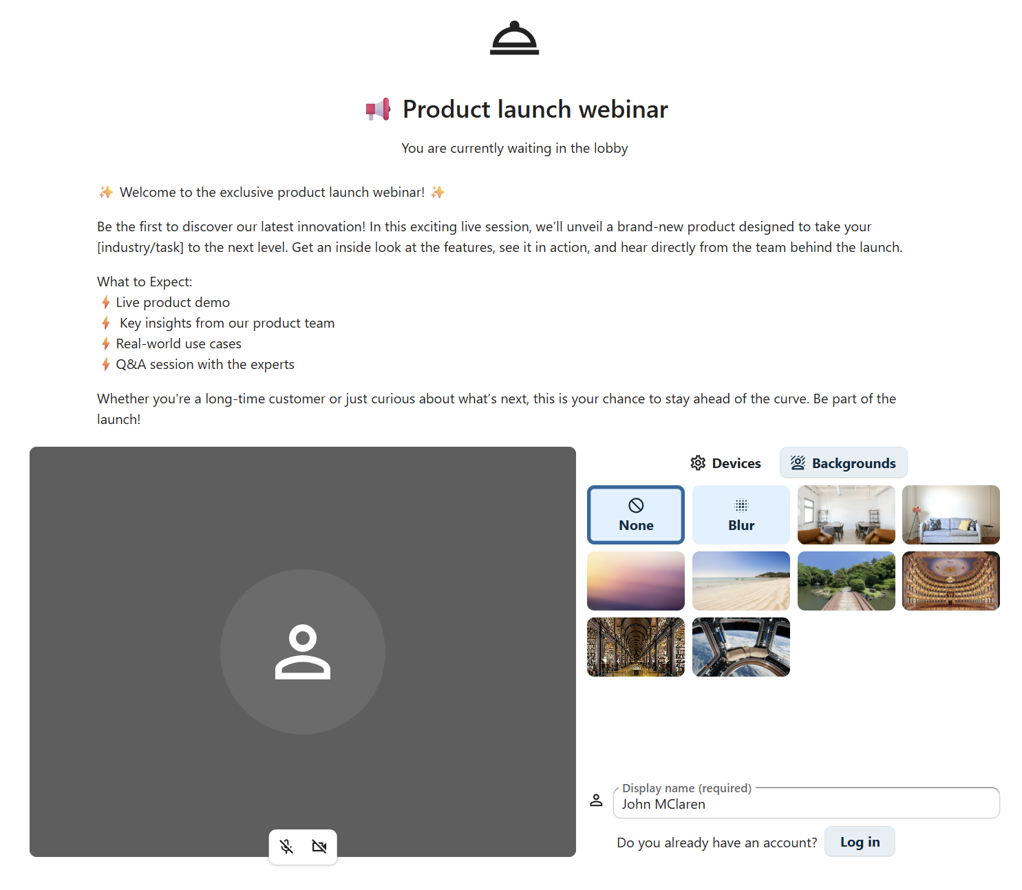 The lobby feature allows you to show guests a waiting screen until the call starts. This is ideal for webinars with external participants, for example.