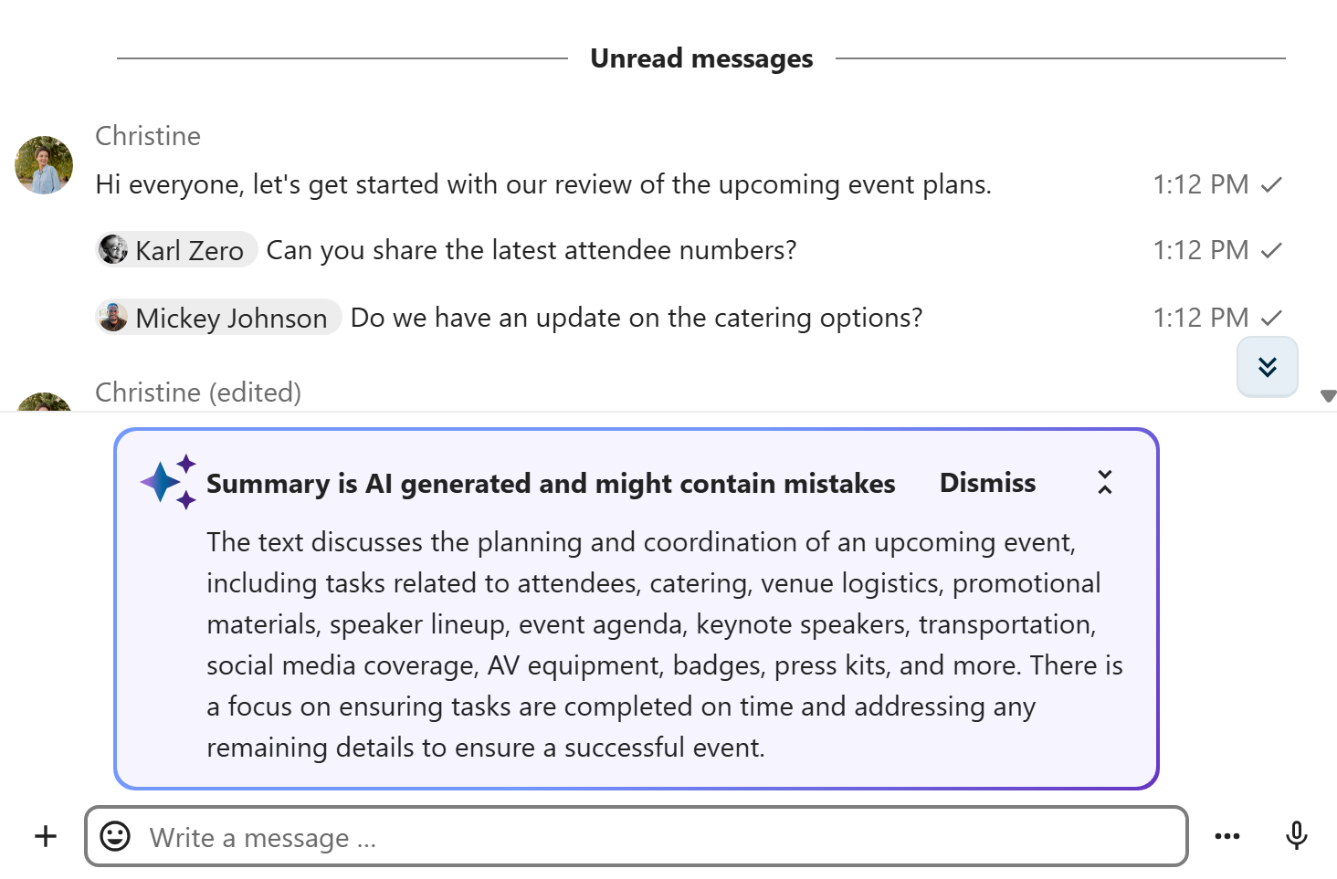 When AI assistant is enabled, a summary can be generated if there are more than 100 unread messages. You can generate it by pressing the button that is visible in chat above the first unread messages.
