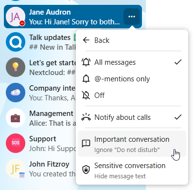 Important conversations: you will be always notificed about new messages, even if you are in “Do Not Disturb” mode;