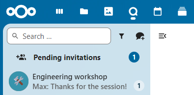 If calendar events have a Talk conversation set as event location, you will see an information about upcoming events inside of this conversation. That way you can stay informed about scheduled meetings or activities directly within your chat. If Calendar app is enabled, you can click on an event to view details.
