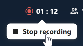 The recording will start shortly, and you will see a red indicator next to the call time. You can stop the recording at any time while the call is still ongoing by clicking on that indicator and selecting “Stop recording”, or by using the same action in the top-bar menu. If you do not manually stop the recording, it will end automatically when the call ends.