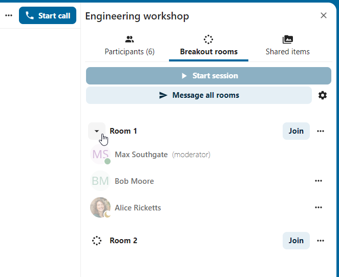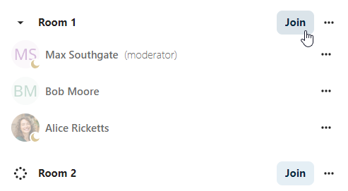 From the breakout room element in the sidebar, you can also join a particular breakout room or send a message to a specific room.